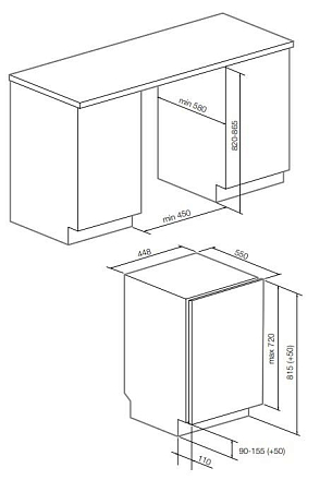 Размеры ниши для встраивания (В х Ш х Г), см
