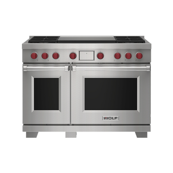 Wolf представляет новинку: кухонный блок ICBDF48450DG. Универсальный прибор  включает в себя два духовых шкафа общим объёмом в 190 литров и газовую варочную поверхность с двойным теппаном. С ICBDF48450DG процесс готовки вкусной, полезной и здоровой еды для большой семьи  или компании превращается в истинное удовольствие.