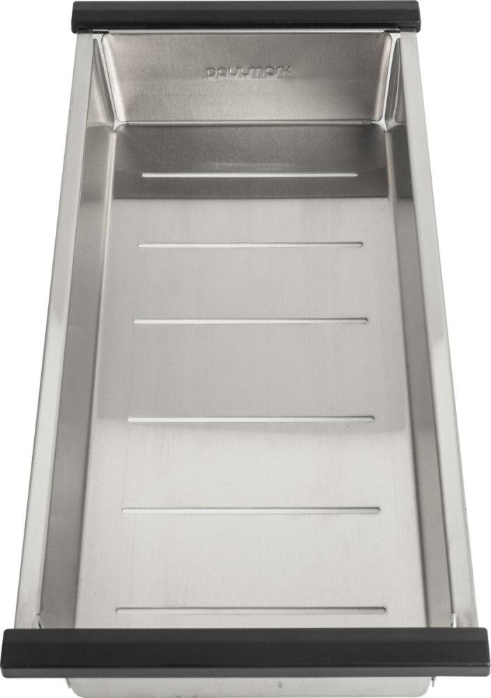 Коландеры Paulmark изготовлены из нержавеющей стали ASIS 304, устойчивы к перепадам температур и к нагрузке. Используются для мытья и размораживания продуктов. Устанавливаются на бортики мойки и в специальные ступеньки моек серии PRO. Размер отверстий в донной части не позволит выпасть даже мелким ягодам и в то же время не препятствует свободному стоку воды. Глубина коландера - 6 см.