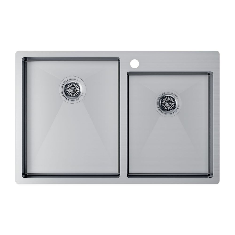 Габариты мойки составляют 780х510мм, две вместительные чаши обеспечивают максимальное пространство и удобство для мытья посуды. Возможен монтаж вровень со столешницей или врезной монтаж мойки.